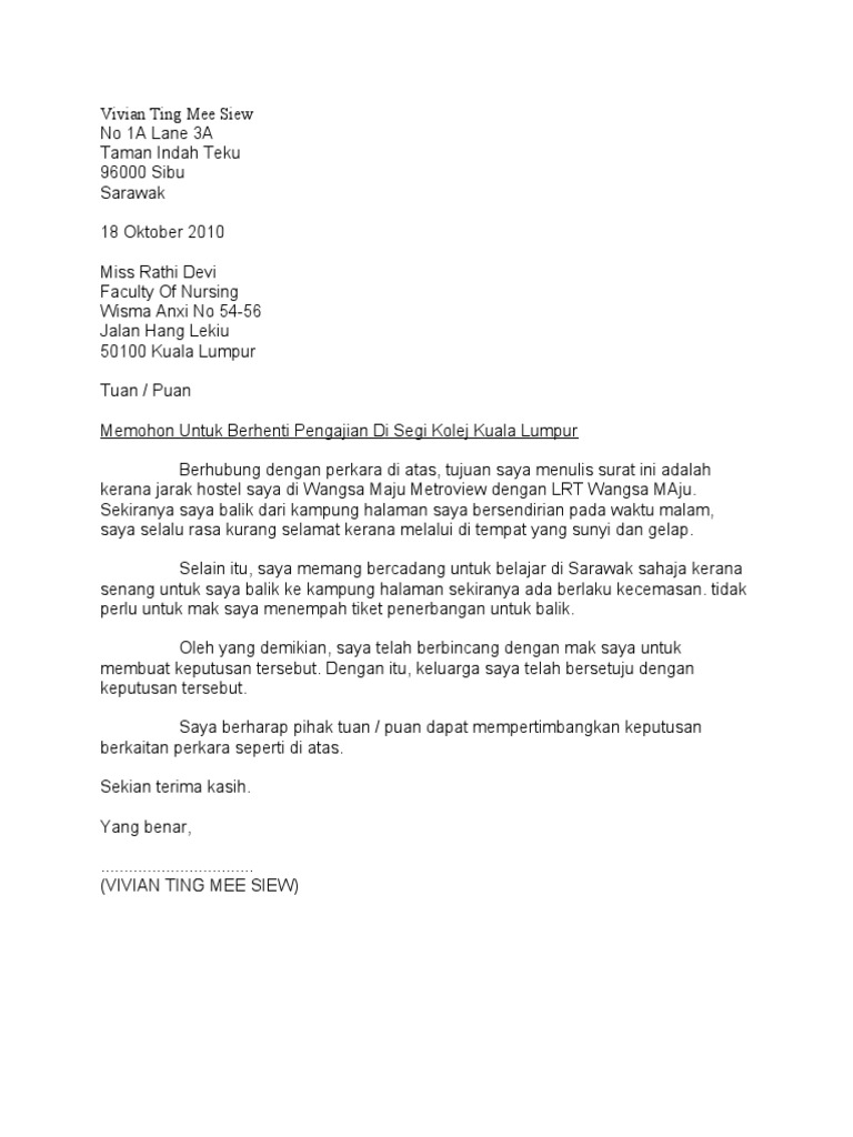 Download 6 contoh surat rasmi tidak hadir sekolahkuliah. Ini kerana urusan menghantar surat kepada guru kelas adalah dikira sebagai urusan rasmi. Surat permohonan keringanan biaya studi, seperti keringanan spp dan keringanan biaya kuliah bisa diajukan contoh 1. Surat rasmi cuti sekolah kerana balik kampung kecemasan u contoh surat tidak hadir ke sekolah 2 sebab balik kampung ahmad khalid 1103 b lorong alor akar 33 25250 kuantan pahang. Surat tersebut biasanya dibedakan menjadi dua, yakni ijin tidak sekolah atau kuliah dan ijin tidak masuk kerja. Surat tak hadir ke sekolah atas urusan keluarga. Surat rasmi cuti balik kampung hrasmi. .sakit, contoh surat rasmi cuti hari keluarga, surat rasmi format, surat rasmi kerajaan, surat rasmi cuti sakit, surat rasmi tidak hadir sekolah, surat surat kiriman rasmi 2 via www.slideshare.net. Contoh surat memohon cuti guru surat w cute766. Baik itu untuk para karyawan di perusahaan swasta, perusahaan bumn, dan juga pegawai negeri. Melalui surat ini saya ingin mengajukan izin cuti untuk pulang kampung selama 3 (tiga) hari terhitung mulai dari hari selasa, tanggal 24 maret 2019 sampai 26 maret 2019. (nama penjaga), 123,jalan matahari 4, taman matahari panas, senawang, 70450 seremban dapat hadir ke sekolah pada hari jumaat bersamaan dengan 25 june 2010 kerana kami sekeluarga balik kampung di kedah atas urusan keluarga. Ini adalah contoh surat rasmi memohon cuti daripada pihak sekolah jika pelajar tidak dapat menghadirkan diri ke sekolah tanpa sijil sakit ataupun untuk dikepilkan sekali bersama sijil sakit.