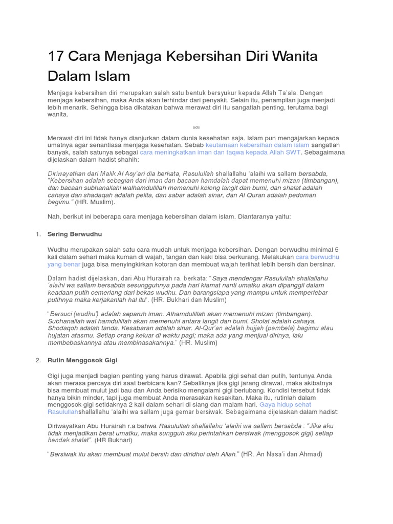 Kebersihan Diri Dalam Islam - Islam dan kebersihan merupakan suatu pondasi dasar dalam beragama.. Islam agama yang lurus dan terang memberi tuntunan pada umatnya. Tapi apakah langkah kita dalam menjaga kebersihan diri selama ini sudah benar? Salah) melalui wuduk dan ghusl. Mengapa di dalam rumah juga perlu menggunakan masker? Klien akan berpartisipasi dalam praktik perawatan rambut.