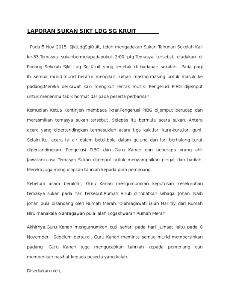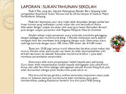 Kejohanan sukan tahunan sekolah pada tahun ini telah dimenangi oleh rumah biru sebagai johan keseluruhan diikuti rumah sukan kuning sebagai naib johan dan rumah sukan merah di tempat ketiga. Laporan kegiatan tahunan 2017 a. Anda dikehendaki menyediakan laporan tentang temasya sukan tahunan yang dijalankan di sekolah kamu. Kejohanan sukan tahunan sekolah sri johor 2020 8hb februari 2020 7.30 pagi stadium azman hashim utm skudaigg. Anda bisa melaporkan semua jenis spt mulai dari spt tahunan pajak badan, spt masa (bulanan) pajak, dan spt tahunan pajak pribadi.